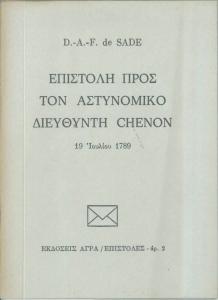 | ΞΛ 846 SADΕπιστολή προς τον Αστυνομικό Διευθυντή Chenon | ΞΛ 848 HUGAlpes et Pyrenees, France et Belgique, Le Rhin | ΞΛ 848 HUGLitterature et Philosophie | ΞΛ 848 VOLRomans | ΞΛ 848 WALΟ Μαύρος Άγγελος | ΞΛ 849 CABConfiteor |